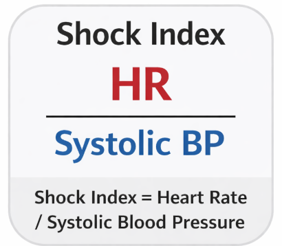 Shock Index (SI) = Heart Rate (HR) Ă· Systolic Blood Pressure (SBP)